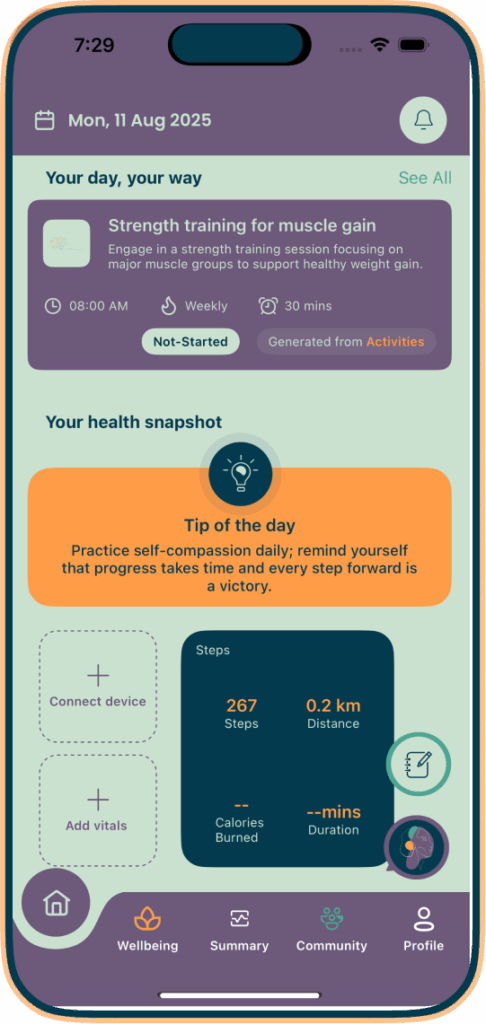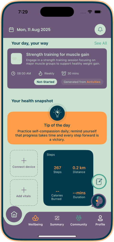 A 24/7 support that learns you and shows what to do next—real-time support, simple built-in tools, visible progress, and a caring community—science-backed and tradition-aware.